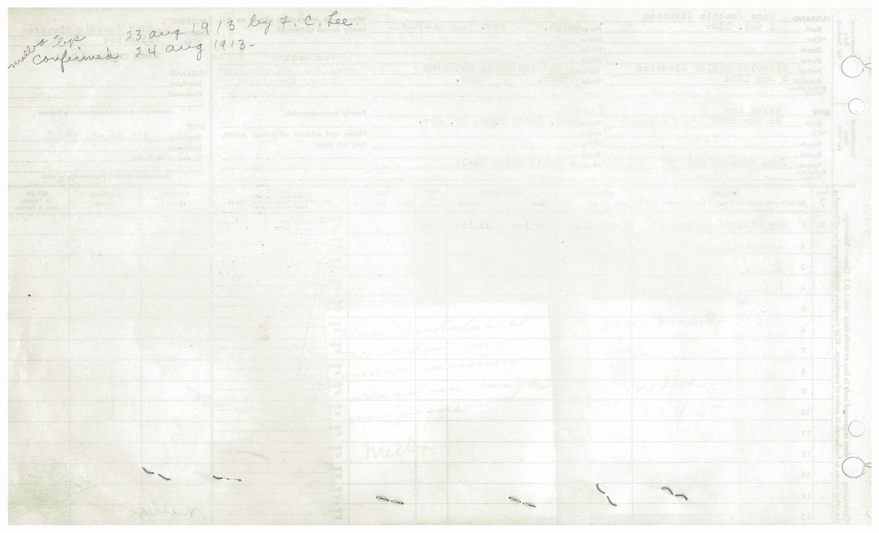 James Horald Lee born 14 July 1902 Sunnyside, Nye, Nevada to John Raymond Lee and Annie Eliza Keele, married 16 November 1922 Salt Lake Temple, Utah Jennie May Woodbury born 7 November 1902 Beaver, Beaver, Utah to Charles Robert Goddard Woodbury and Agnes Isadore Bickley. James died 24 March 1976 University Hospital, Salt Lake City, Utah, buried Redwood Memorial Estates, Salt Lake City, Utah. Jennie died Salt Lake City, Utah, buried Redwood Memorial Estates.